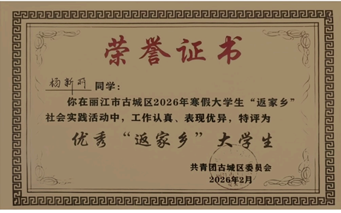 寒假期间,边疆发展学院学生积极响应大学生“返家乡”社会实践号召,奔赴云南各地基层一线,在文旅服务、乡村帮扶、政务实践、文化传承、社区志愿等岗位上脚踏实地、履职尽责,用实际行动诠释青年担当,把青春汗水挥洒在家乡的热土上。现将部分优秀个人事迹予以展示: